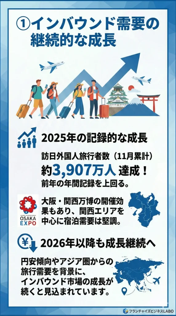 大阪・関西万博の開催効果もあり、インバウンド需要は今後も堅調な成長が見込まれています。